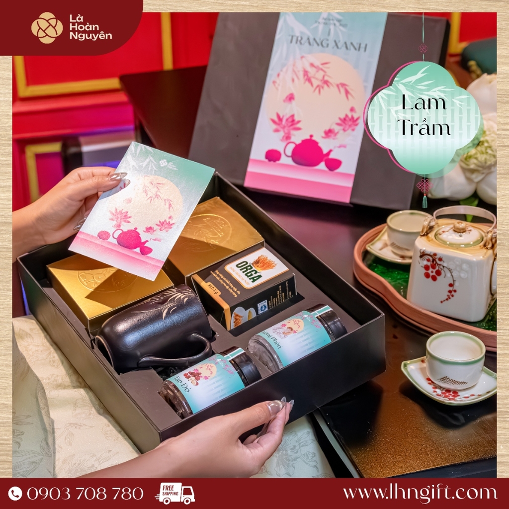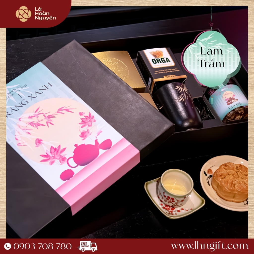 Hộp quà kết hợp giữa trà sâm thanh mát và tinh dầu thơm dịu nhẹ, như một liệu pháp để làm mới tâm trí – thảnh thơi trong khoảnh khắc Trung Thu.